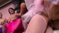 Horny Sluts Enjoy Wild Orgy with Happy Dude