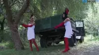 In the heat of a beautiful sunny afternoon, two gorgeous Outdoor Slutty Beauties, both with sultry looks and athletic bodies, decided to satisfy their intense desires in an uninhibited outdoor lesbian encounter.Their naked bodies glistened under the golden sun as they passionately kissed and touched each others smooth skin.As the women explored their lusty desires, they couldnt help but feel even hornier for one another.They started by sucking and licking each others pussies with eagerness, focusing on their clits that swelled as the women became more aroused.Their wet labia were pulled apart by skilled tongues, bringing them to new heights of pleasure.They then decided to spice things up with a little bit of outdoor slutty style they went into doggystyle positions under the bright sun, exposing their round asses for each others pleasure.While one beauty was riding her partner from behind, her naked back glowed in the sunlight.Her labia rubbed against the womans clit in a way that brought her to climax after climax.The second woman, however, loved the power she felt while being on top and fingered herself as well, leaving her pussy all wet and dripping for her lover.As both beauties reached their climax, they lay down, breathless but still horny.They shared a passionate kiss once more before deciding to end their lesbian encounter in an outdoor orgy with other bitches and dudes.The three people in the group shared a wild blowjob session as they fingered each others pussies.They moaned and gasped while getting fucked from behind and on top, completely surrendering to the lustful desires of their new outdoor slutty community.In this video description, the two women not only explored lesbian love but also dabbled in a threesome with another man and woman.The intense passion between them all was palpable through their moans and climaxes.With their lingerie on the side, the beauties revealed that even in outdoor settings, they were fierce and unstoppable.