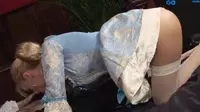 In a dimly-lit bedroom adorned with sensual lace and erotic frills, the couple, consisting of an alluring blonde and her dark-haired lover, sat naked and entwined in an intoxicating passion.Their lustful gazes spoke volumes, as they eagerly undressed each other, taking time to admire every curve and caress with delicate fingers.The frilled curtains rustled gently with each breath, hinting at the excitement that lay ahead.As the blonde, clad in a lace teddy, traced her man's muscles through the fabric, he couldn't help but moan with pleasure.With dexterous fingers, she caressed his chest and abdomen, slowly moving towards the waistband of his boxers, feeling the excitement that had swollen there, desperate to be released.The anticipation was fun them both.As the guy began to playfully finger the doll-like woman, her pouty lips parted ever so slightly in a silent plea for more.She eagerly pushed herself closer, and he obliged with relentless enthusiasm, his fingertips dancing along the labia of her swollen sex as she arched her back and cried out softly.He knew just how to make her body sing in harmony with his touch.As the couple continued their intimate foreplay, they explored new realms of pleasure and desire.Her delicate fingers traced intricate patterns on his chest, her tongue exploring every crevice as it teased the sensitive area around his nipples, leaving him panting for more.The anticipation was unbearable - they were mere seconds from exploding in a tidal wave of ecstasy that would drench them both.In one swift motion, he pulled away from her lips, the passion-fueled flames now consuming every fiber of their beings.He plunged into her eager cunt with animalistic ferocity, her moans growing louder as she clenched around his dick.The sensation was electrifying, a fun to be reckoned with that left them both breathless.Their bodies moved in perfect harmony, the erotic rhythm of their passion fueled by the frills and lace surrounding them.They embraced each other tightly as they rode the wave of desire, her ass cheeks clenching around him as she screamed his name, begging for more.Her body pulsated, gripping his dick with a fierce intensity that sent shivers down his spine.As their climaxes collided in a mind-shattering crescendo, every sensation intensified and magnified beyond belief, leaving them both breathless.As the aftershocks rippled through their quivering bodies, they clung to one another, still joined as one.It was but a glimpse of an endless dance they would share for eternity.